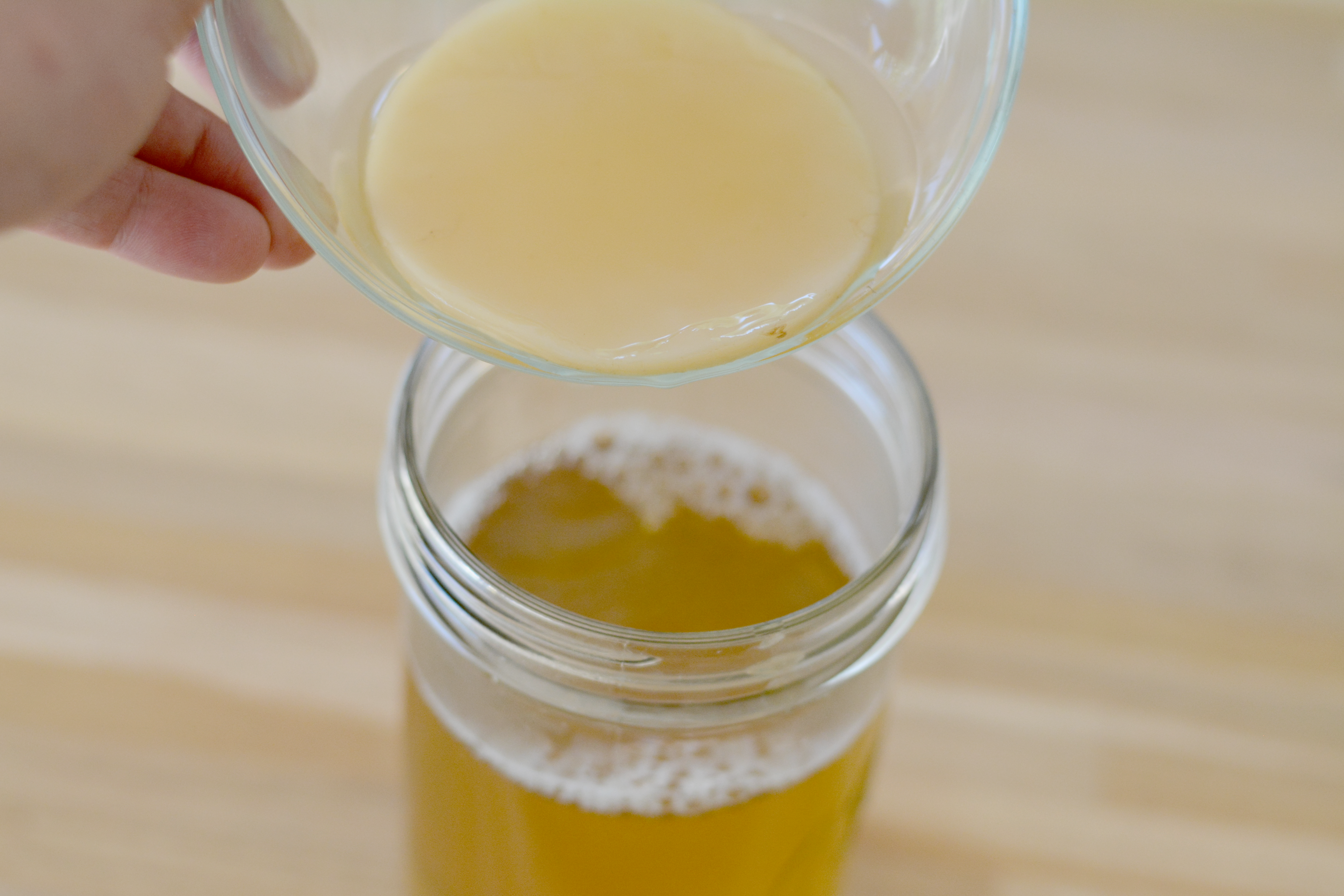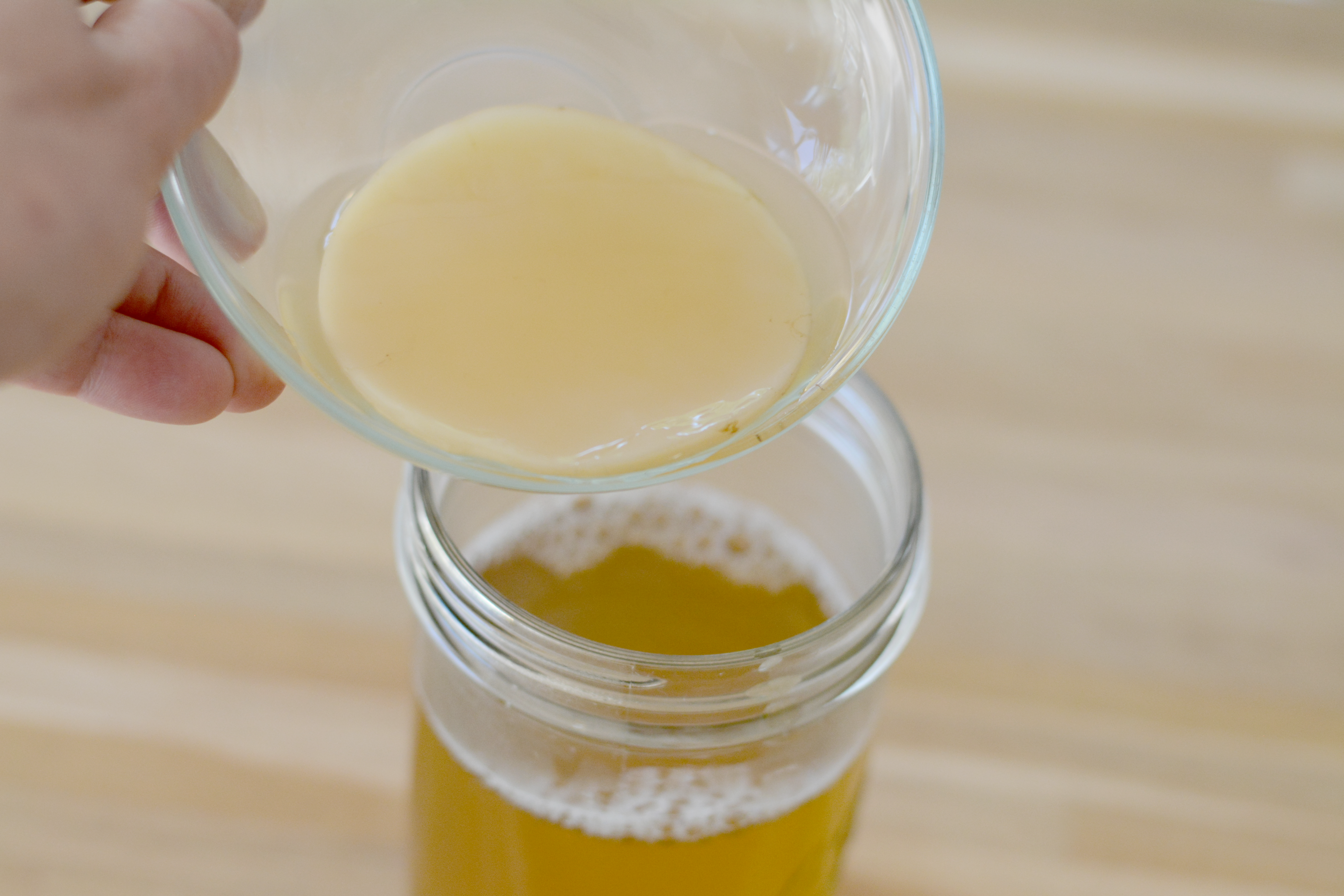 • Transférez le mélange dans votre pot en verre vide tout en filtrant